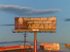 My supper was stuff out of the cooler at a rest area in Amargosa Valley, and cold drinks from the Alien Cafe and Store, across the road. The store clerk was facing an issue that hits a lot of us in rural areas: Spotty cell phone service and bad customer service- Some of you might know the drill, “Want us to help? You need to drive into town.” (I have this issue with T-Mobile not being in Prescott, so Phoenix is the place to go for service.) Her carrier is only available 56 miles away in Las Vegas. Closer, though, is Area 51.