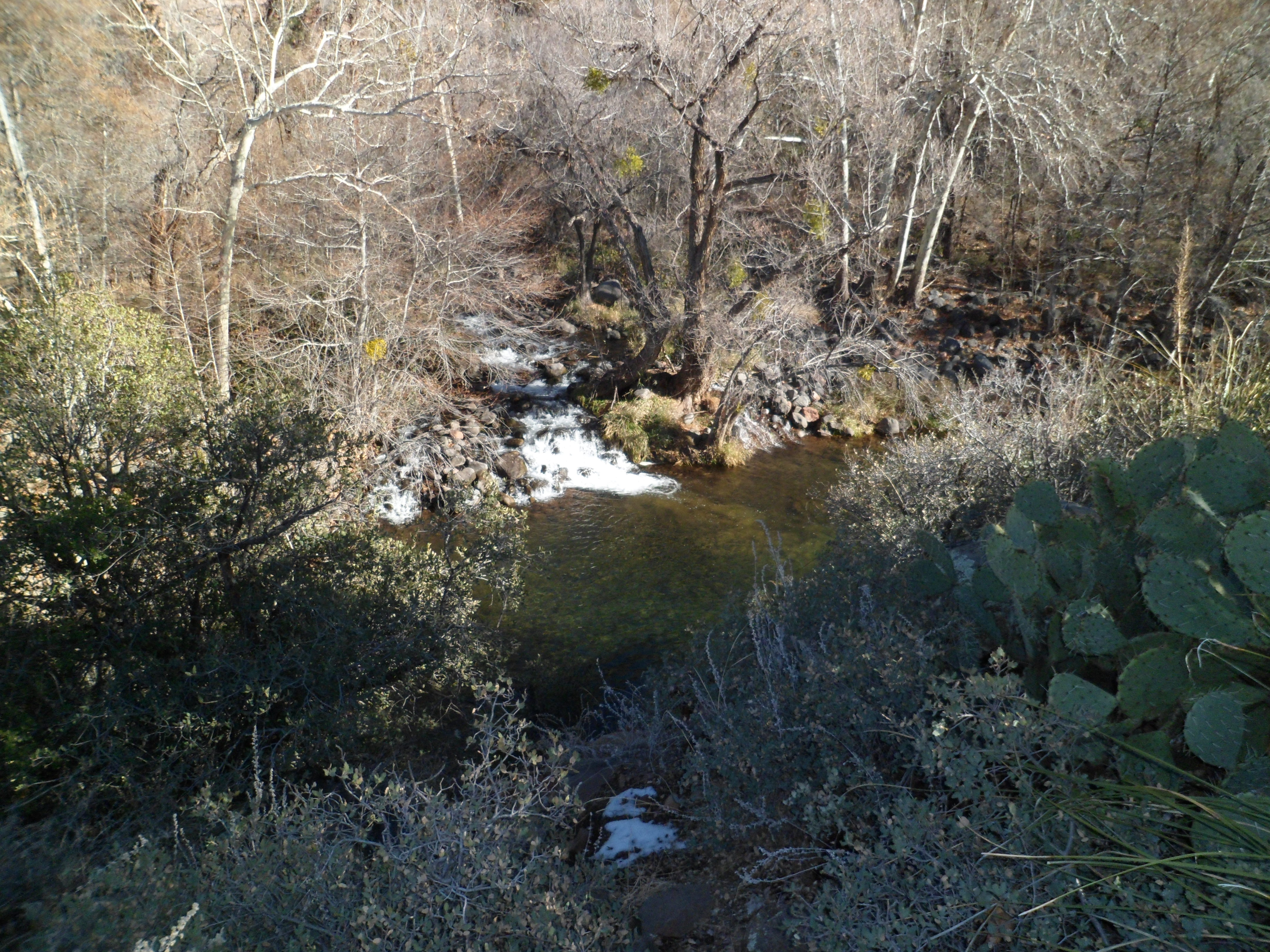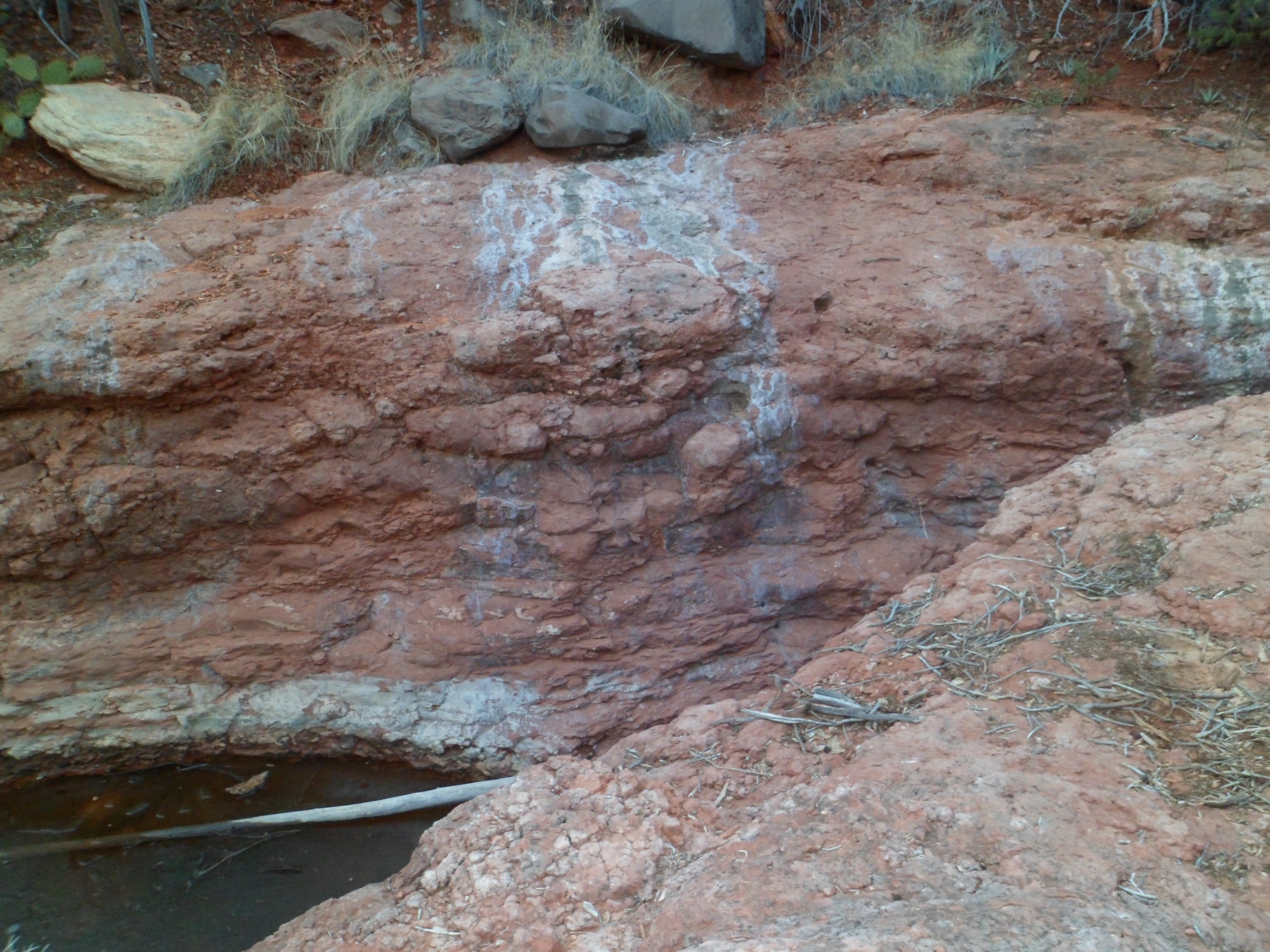 Some fifteen years ago, a couple of local teens spotted some ancient petroglyphs along the trail from the parking area to Badger Springs. Walking further towards the second bend, they decided to tell their own story on this limestone bench. It’s a love story, and still is visible in the fluorescent spray colours they used.
