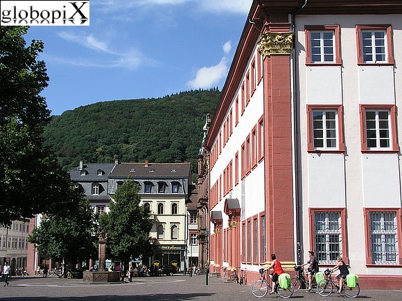 The old campus of the University of Heidelberg is just off the Universitatplatz, where a group of British school girls were fawning over a bearded twentysomething German student, by the fountain seen below. Some things are just universal. (Photo courtesy of www.globopix.de)