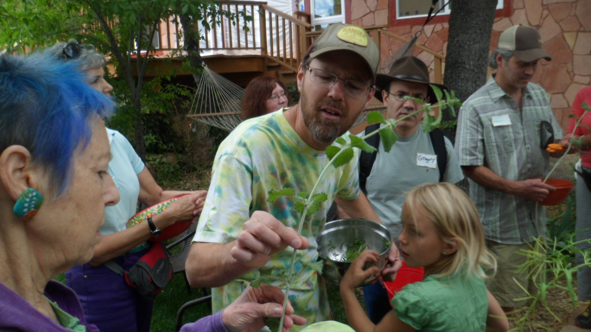 Happy, in front, showed us about a dozen plants that can sustain a person, in the wilds of Granite Dells.