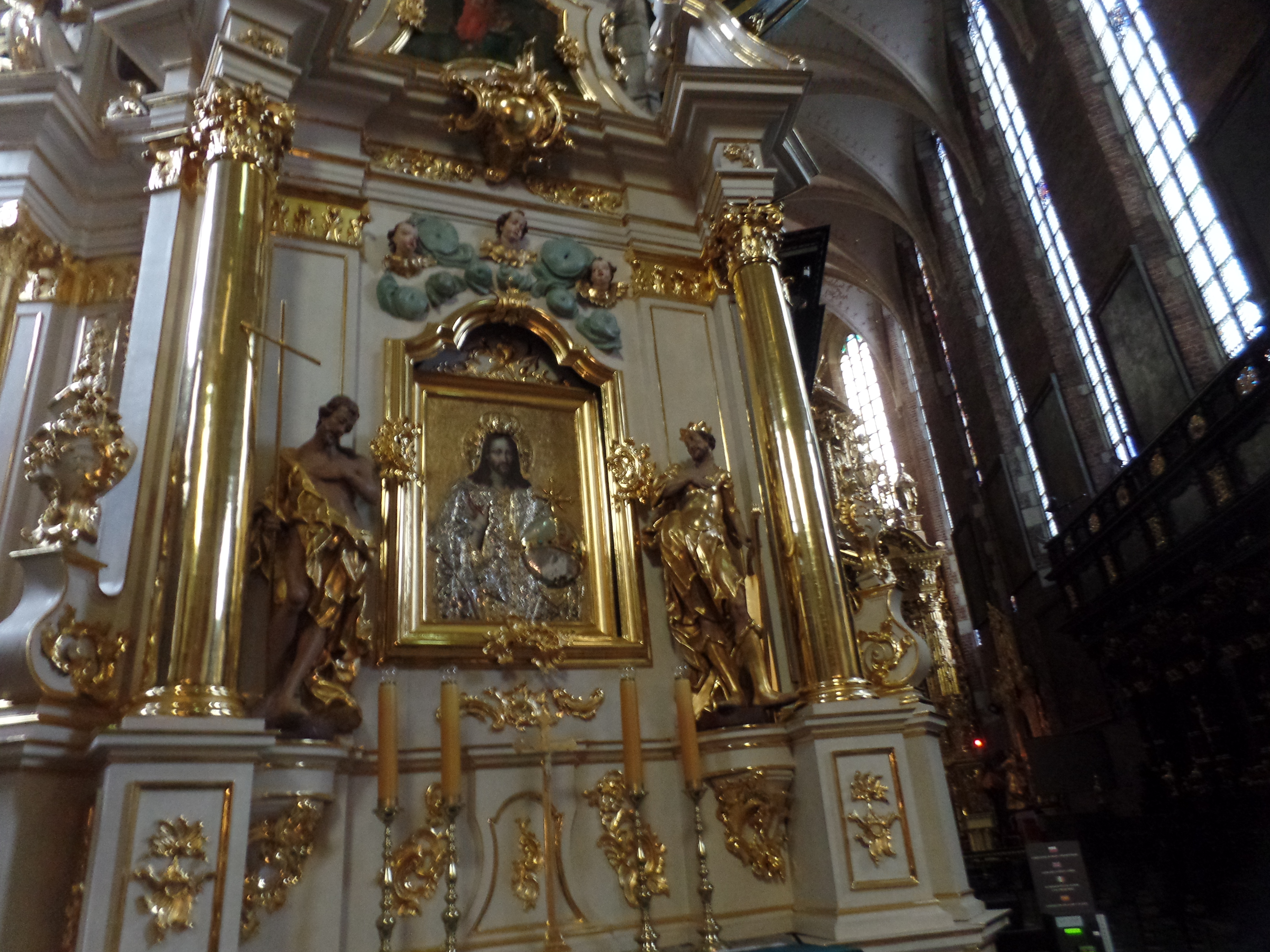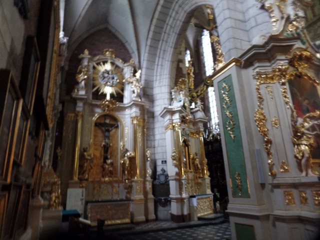 The interior is meticulously maintained. There were a few ladies inside, engaged in their devotions, so I was careful in choosing places to share here. Kasimir III loved to showcase gold, so the most striking scenes of Corpus Christi are accented in the metal.