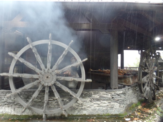 Prenj Range (Pren-yeh), outside MostarNeretva River, near Donja Jablanica (Donya Yablanitsa), Hercegovina. It was near here that we stopped and the driver had his lunch. I opted to wait until Sarajevo. Below, are the rotating barbecue wheels at Lamb House.Old-style roasting spits, Lamb house, Donja Jablonica