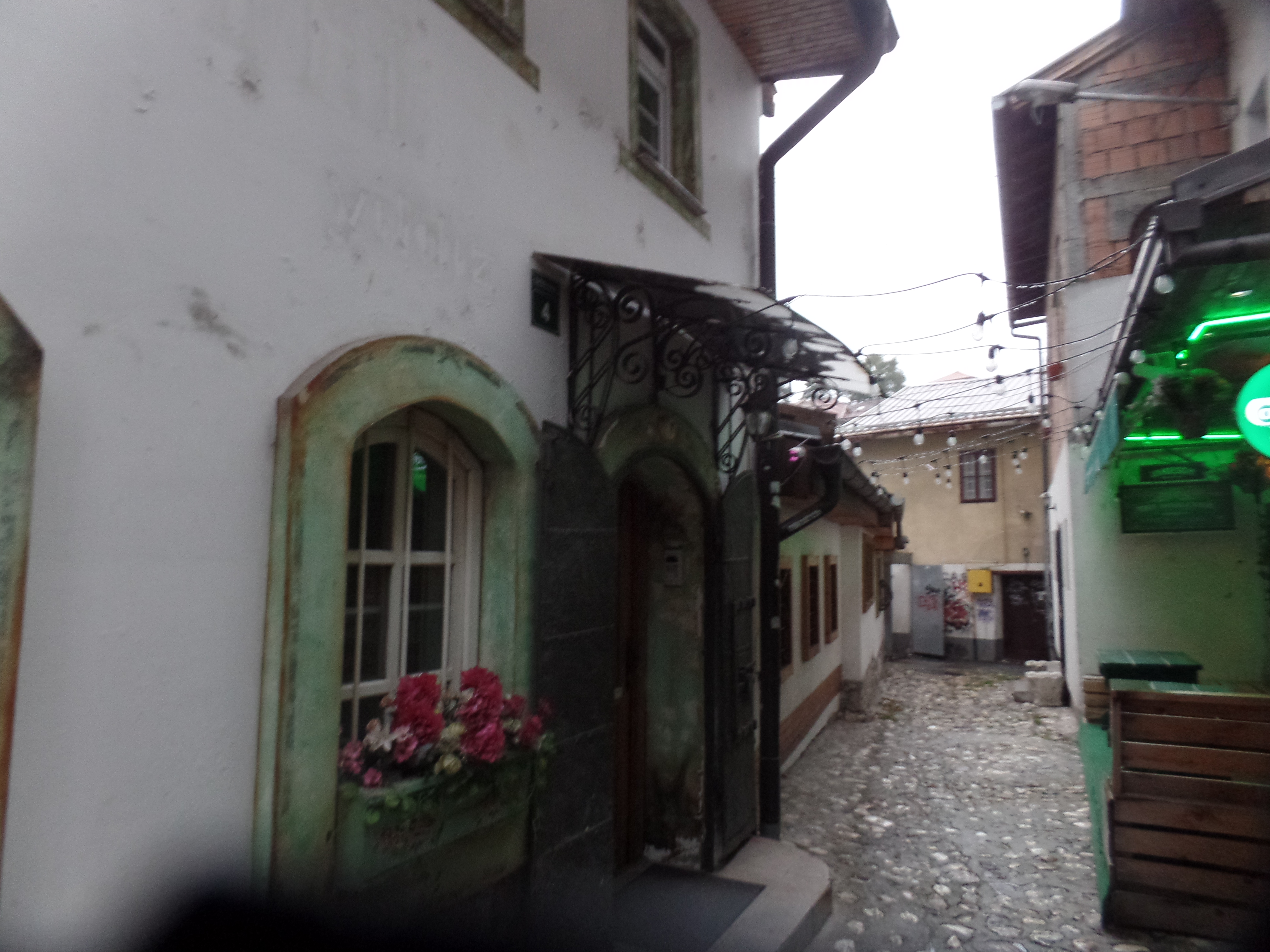 About an hour later, we were in Sarajevo. I caught a taxi in short order, and that driver, from Libya, was determined to find Guesthouse Yildiz. He was very close, but it took asking around the immediate Old Town neighbourhood to get the exact spot. Now, he has another hard-to-find address on his phone.