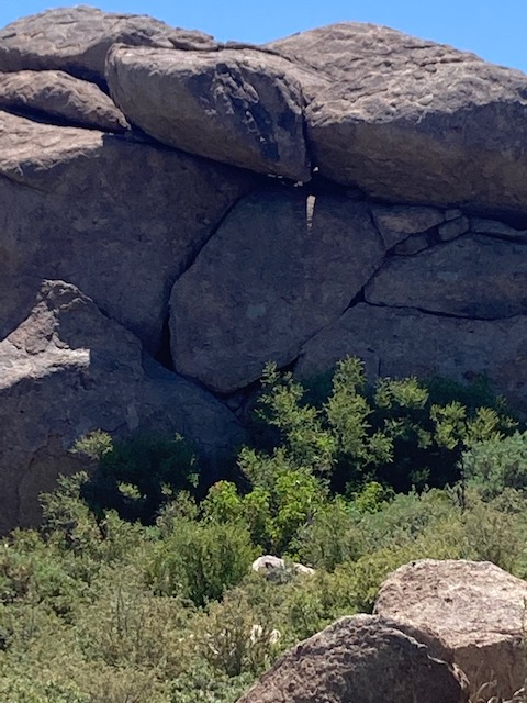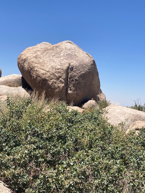 Just past the last placard honouring a fallen Hotshot, this boulder evokes a broken heart.