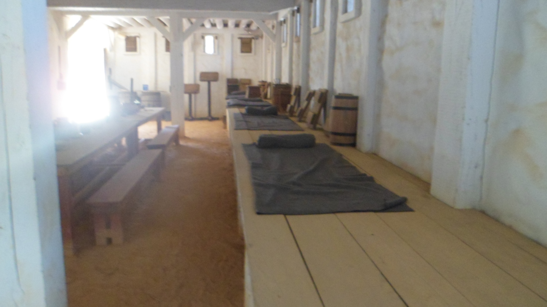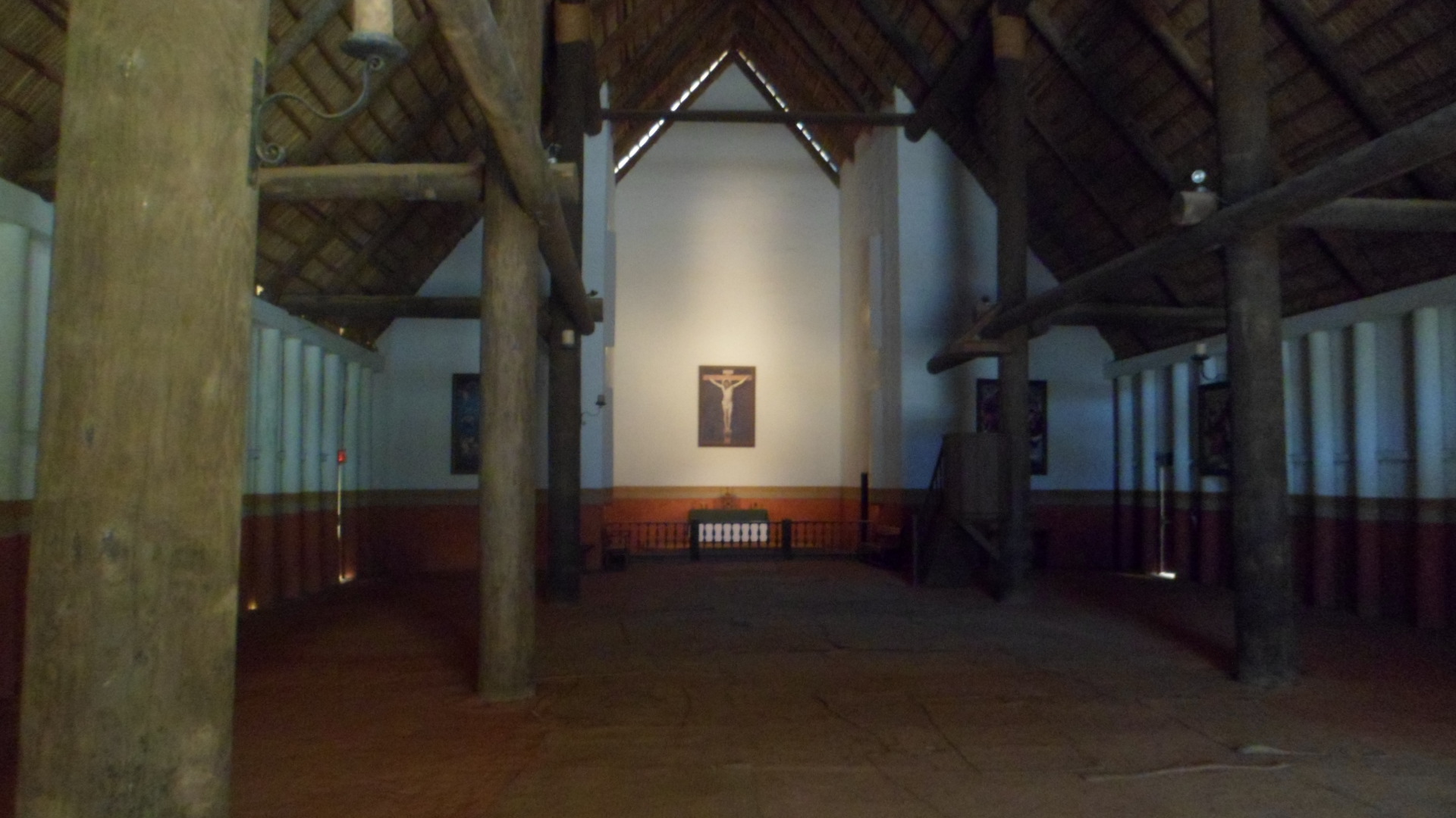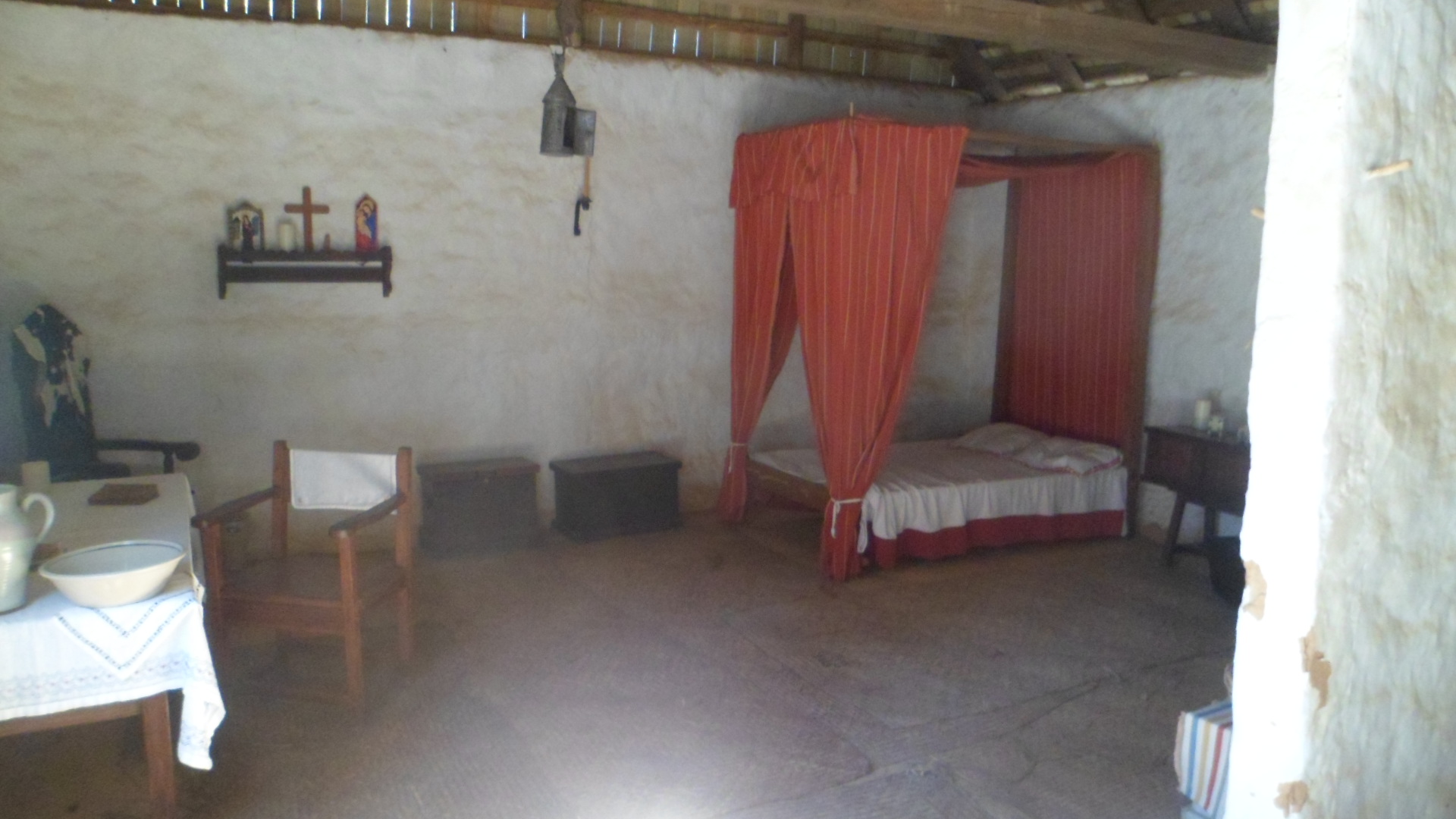 The inside is quite spare, with no semblance of ornate flooring. The floor is sand, as is the case in the friary, the kitchen and the Council House. Woven mats were used to keep the dust down, with varying degrees of success.