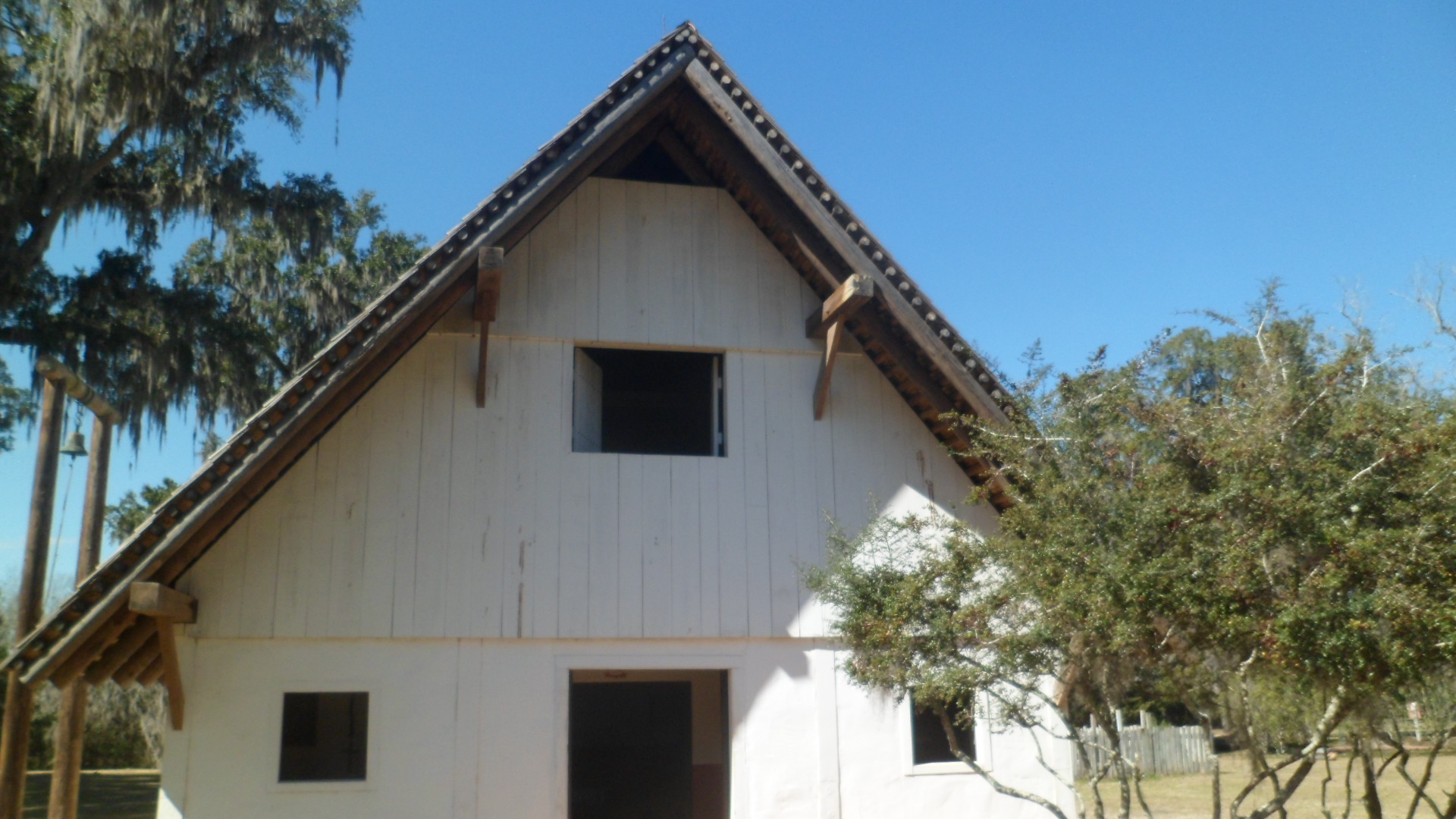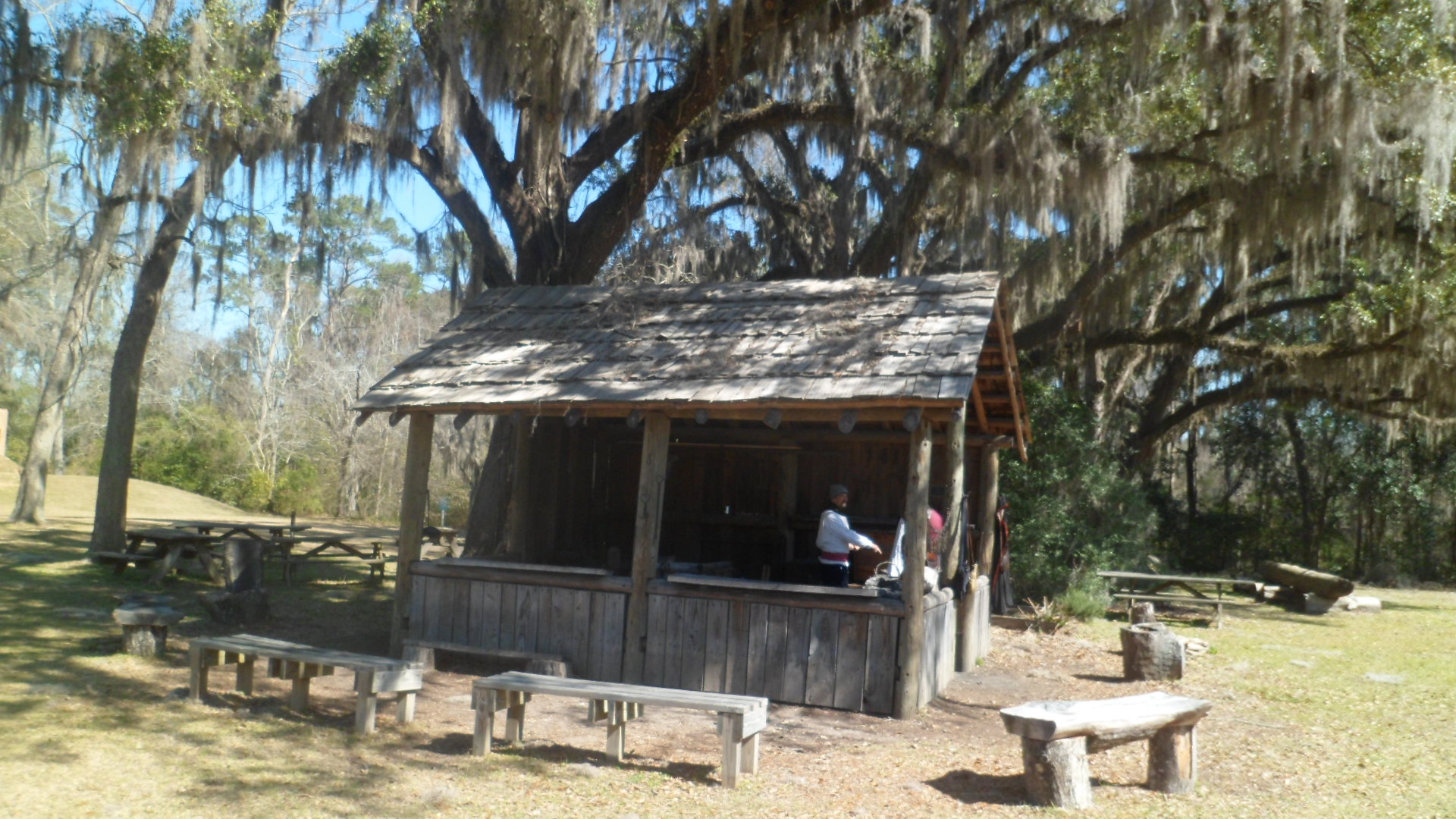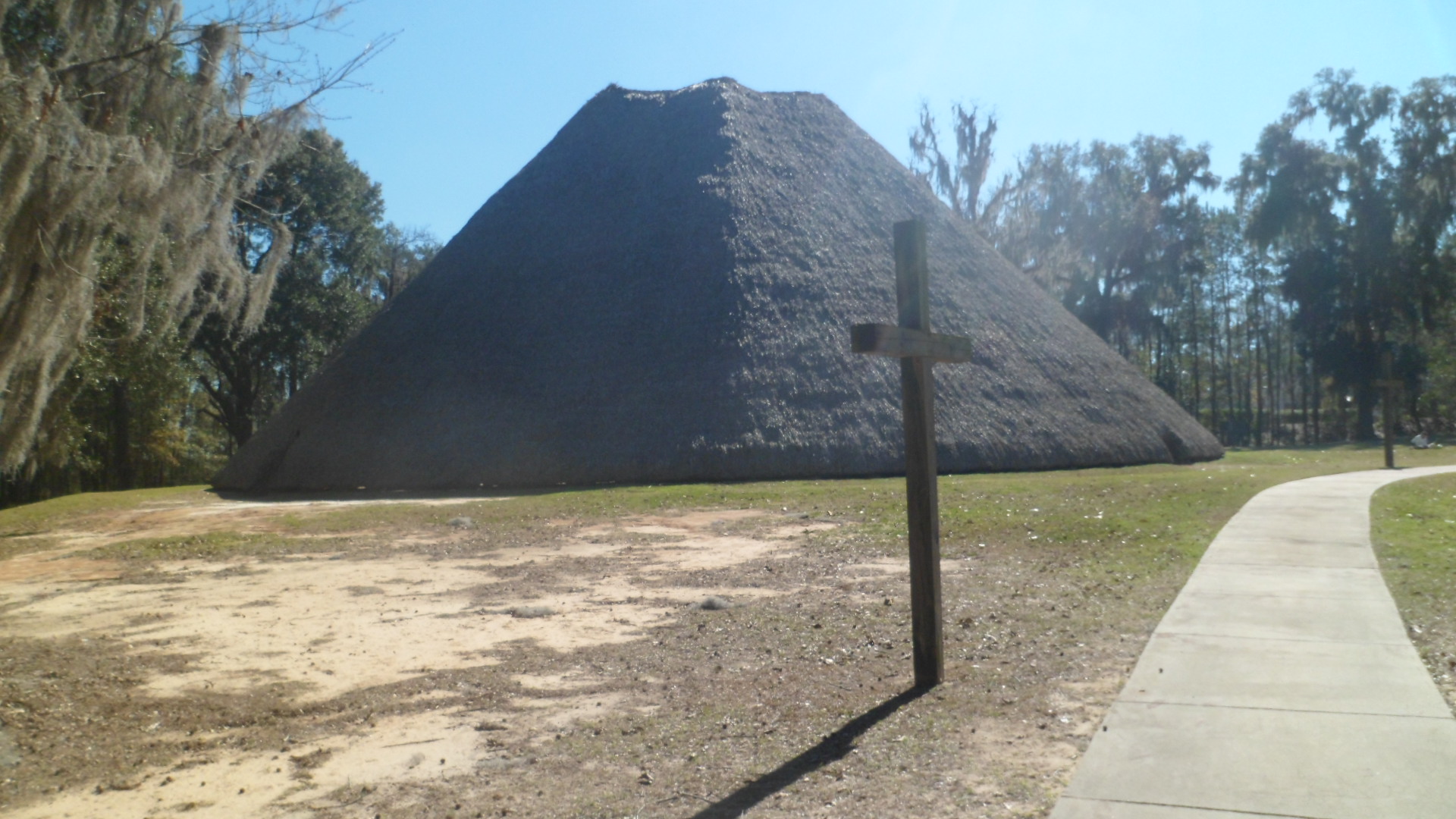 Here is an outside view of the Mission Church. Note the roof thatch, which is the same material as covers the Council House of the Apalachee.